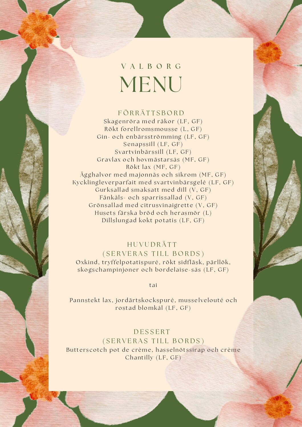 Fredagen den 1 maj 2025 serverar vi i en elegant och historisk miljö ett generöst fiskbetonat förrättsbord, följt av bordsserverad huvudrätt och dessert.